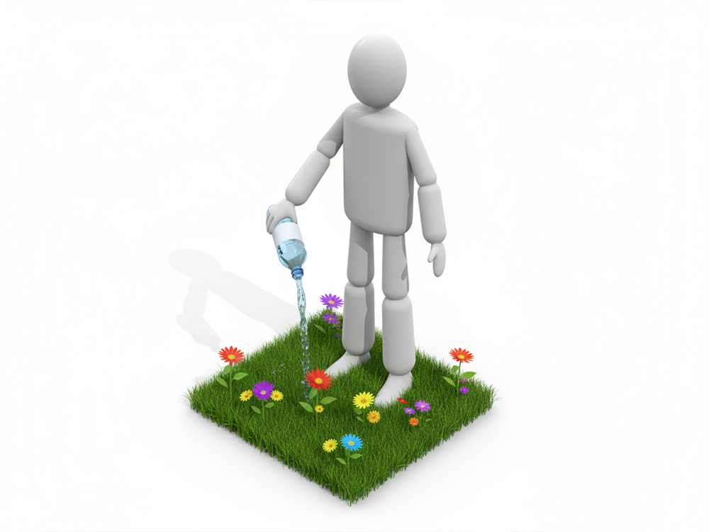 一人の人物が、小さな芝生の上に咲いたカラフルな花々に、ペットボトルから水を注いでいるイラストです。この行動は、「育成」「成長」「環境への配慮」「手入れ」「ガーガーデニング」といった、長期的な努力やケアを象徴的に表現するのに適しています。企業のCSR活動、教育、農業、ライフスタイルなどのコンテンツ作成に特に有効です。無料でダウンロードできるフリー素材で、ウェブサイト、チラシ、ビジネス資料など、商用利用を含め幅広くご利用いただけます。