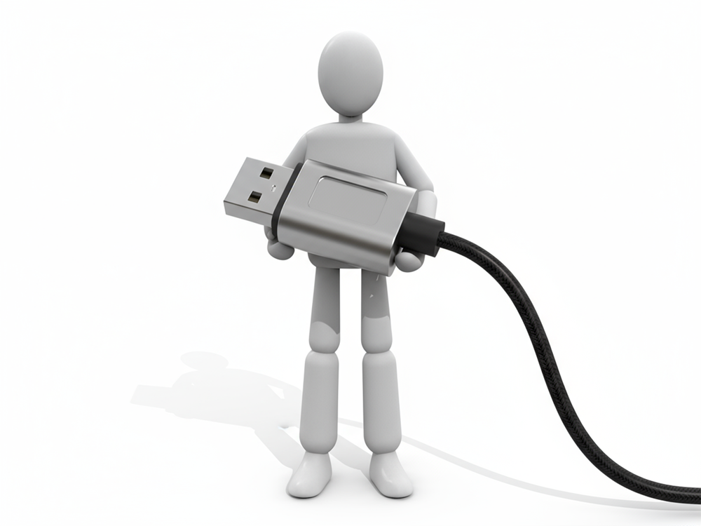 大きなUSBケーブルを持つ人物の無料イラスト素材