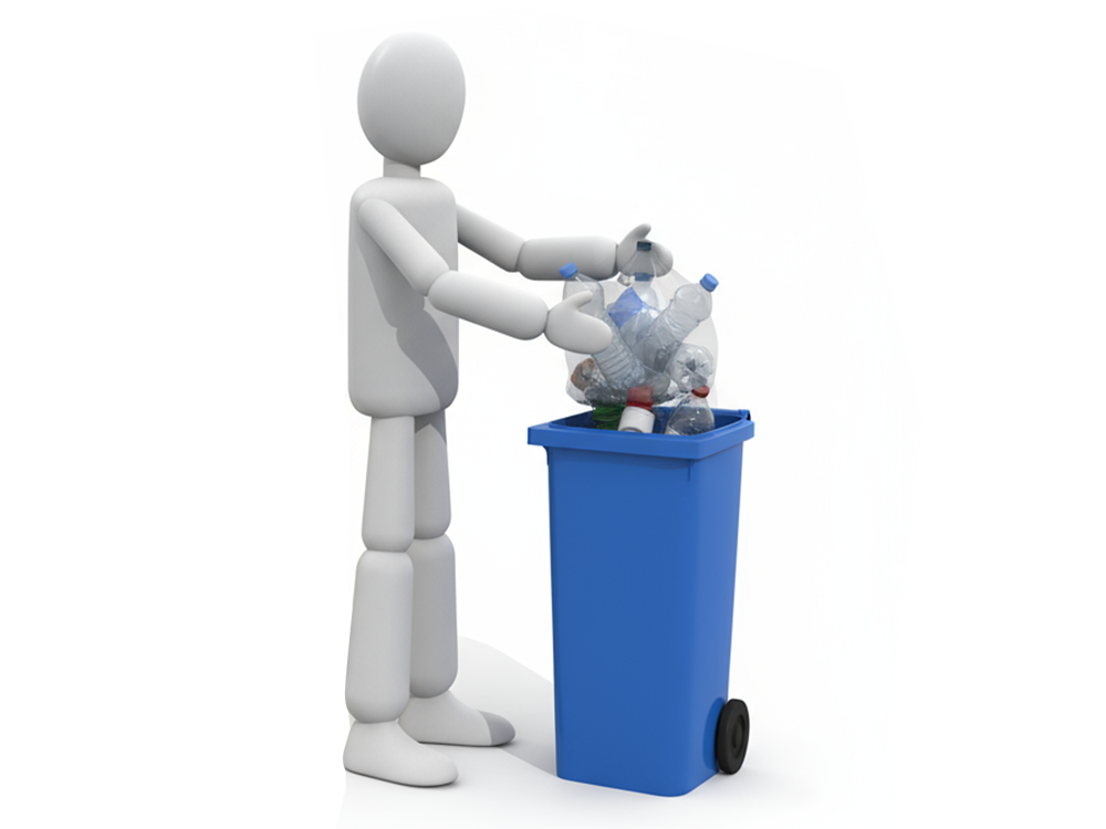 ゴミ箱にペットボトルを捨てるリサイクルの無料イラスト素材
