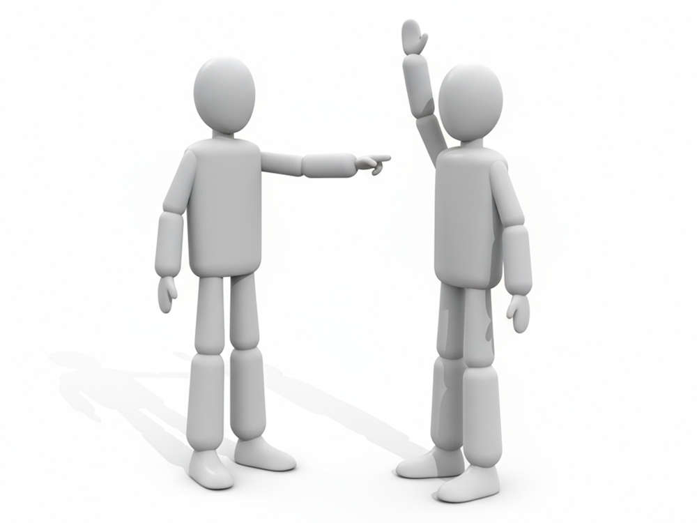 二人の人物が向かい合って立っているイラストです。一人は指を差して何かを指摘(指示・注意喚起)しており、もう一人は手を挙げています(質問・回答・意見表明)。この構図は、会議での質疑応答、教師と生徒、上司と部下の関係、意見の相違、問題の指摘とそれに対する反応など、多様なコミュニケーションの状況を表現するのに適しています。ビジネス、教育、組織論、人間関係のコンテンツで特に有効です。この無料イラスト・フリー素材は、商用利用OKで、著作権を気にせず、様々な資料やウェブコンテンツにご活用いただけます。