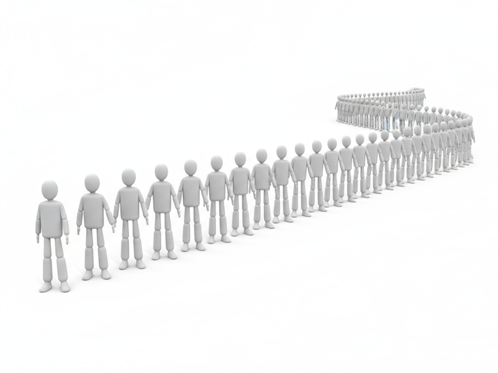 多数の人物が、緩やかなカーブを描きながら一列に長く連なっているイラストです。これは、「人気のあるサービスや商品」「順番待ち」「混雑」「ブーム」「多くの利用者の存在」といった、社会的な現象やサービスの需要を象徴的に示しています。イベントの告知、サービスの登録待ち、施設の利用案内、経済ニュースなど、「多くの人々」の存在を示す多様な場面で活躍します。シンプルで統一感のあるデザインが特長です。この無料イラストは、商用利用OKのフリー素材として提供されているため、著作権を気にせず、ウェブサイトや資料作成に安心してご利用いただけます。