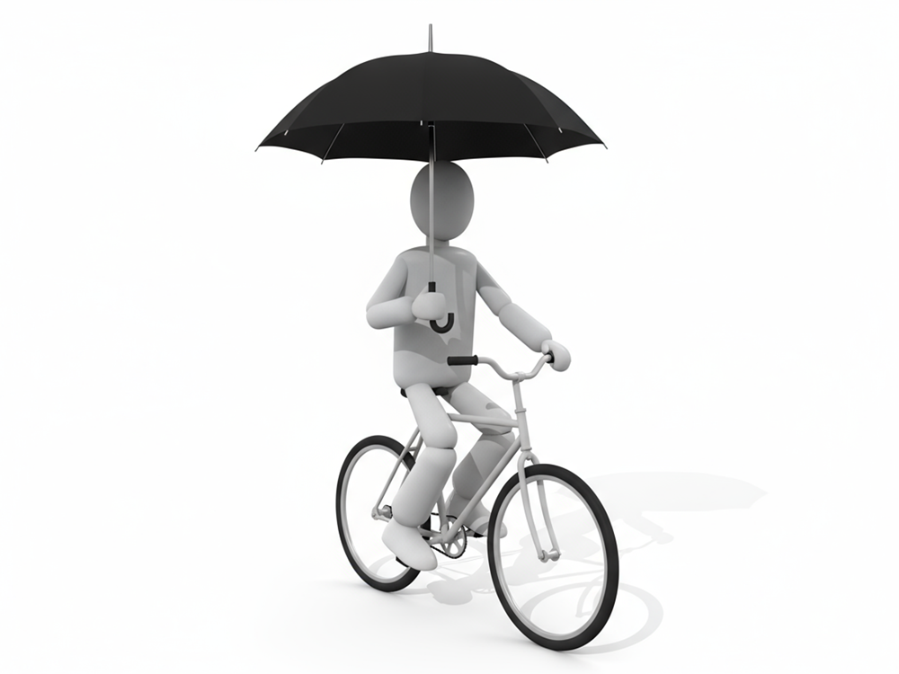 一人の人物が自転車に乗りながら、片手で黒い傘をさしているイラストです。この行動は、「傘差し運転」という交通違反であり、片手運転による危険な行為を表現しています。交通安全キャンペーン、学校での指導、地域での啓発活動、交通マナーに関するウェブ記事などに最適です。シンプルながらも危険な状況が明確に伝わるデザインが特徴で、注意喚起のメッセージを強調できます。無料でダウンロードできるフリー素材で、ウェブサイト、ポスター、教育資料など、商用利用を含め幅広くご利用いただけます。