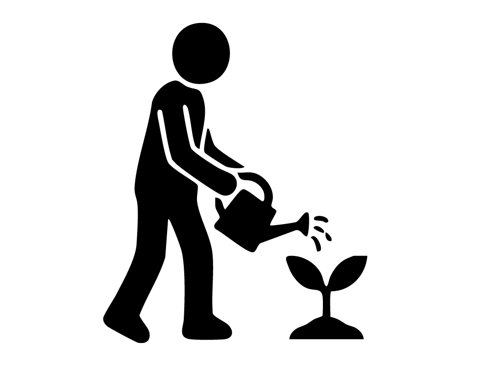 成長の象徴!小さな芽に水やりをする人の無料ピクトグラム