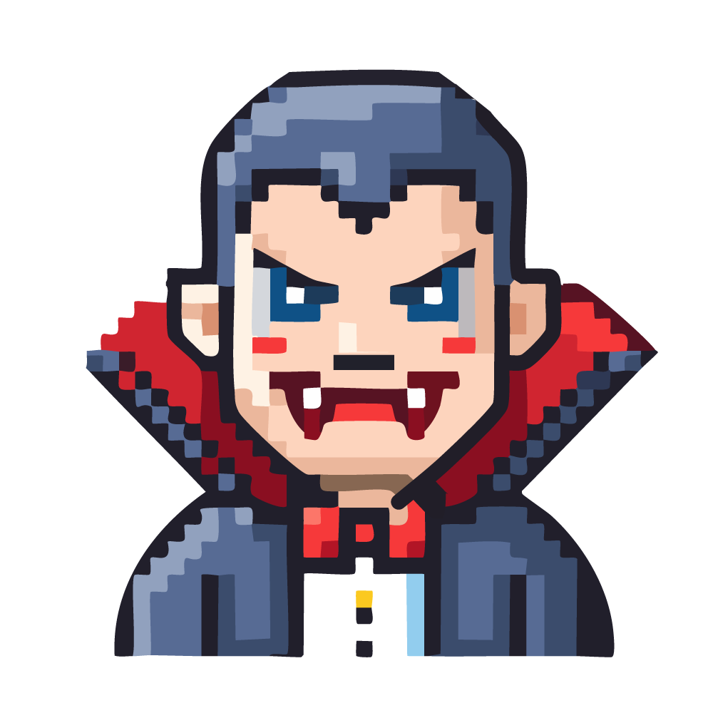 ピクセルアートの吸血鬼キャラクターアイコン|商用利用OK