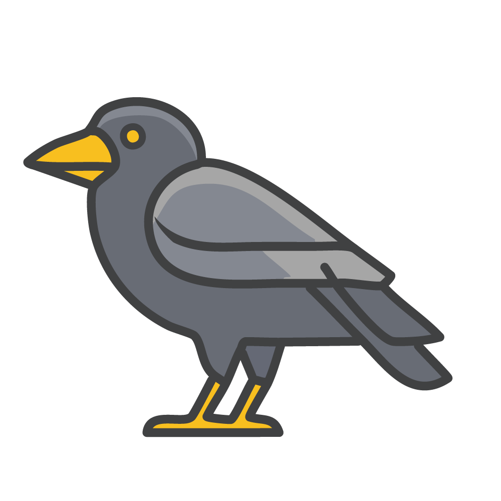 黒い体に黄色のくちばしが特徴的な、一羽のカラスのイラストです。カラスはハロウィンやミステリー小説など、ダークなテーマの定番モチーフです。デフォルメされていますが、不気味さと知性を感じさせる雰囲気を伝えます。ウェブサイトのワンポイント、ハロウィンイベントのチラシの飾り、ブログの挿絵など、様々なメディアで活用できます。商用利用OKのフリーイラストなので、デザインのアクセントとしてご活用ください。