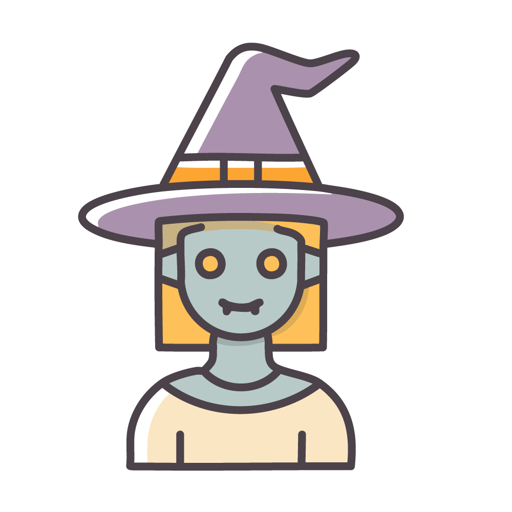 紫色の魔女の帽子をかぶり、鋭いキバを見せる女吸血鬼(ヴァンピレス)のアイコン風イラストです。青みがかった肌とオレンジ色の髪が、独特のミステリアスな雰囲気を醸し出しています。魔女と吸血鬼というハロウィンの二大キャラクターの特徴を融合させたユニークなデザインです。ウェブサイトのアクセント、SNSのプロフィール画像、ハロウィンイベントのホラーゾーン告知など、様々な用途に最適です。商用利用OKのフリーイラストをデザイン制作にご活用ください。