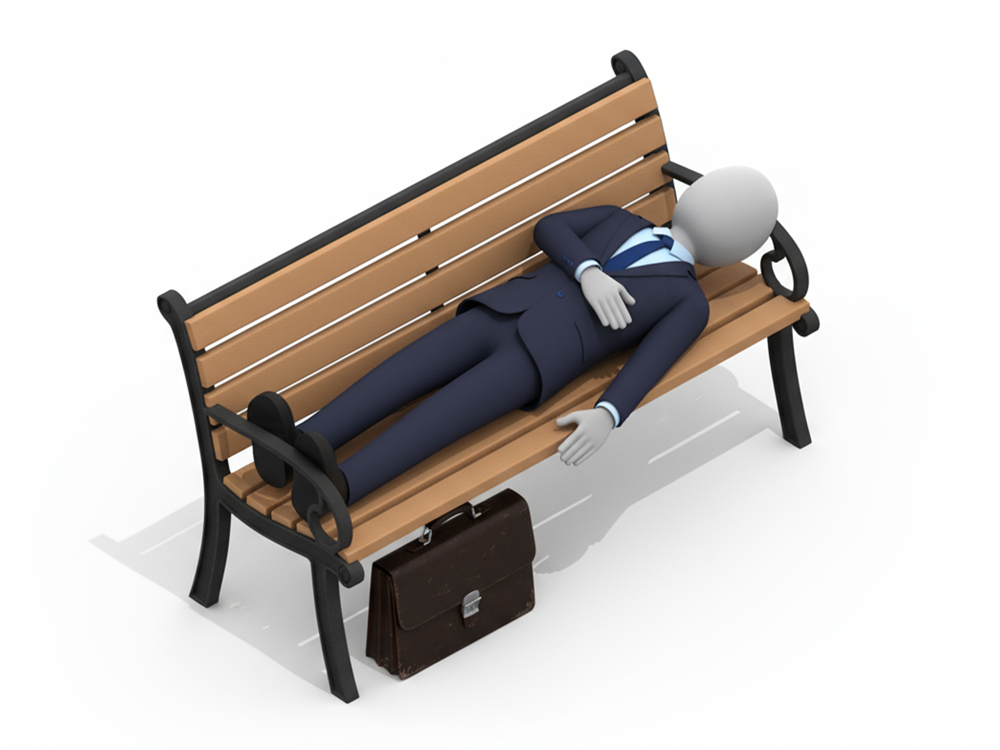 束の間の休息|ベンチで眠るスーツ姿の人物の無料イラスト