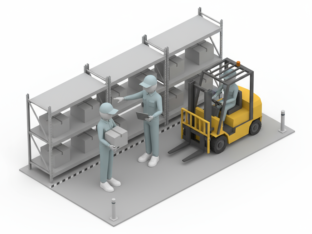 フォークリフトと連携する倉庫作業員のイラスト【フリー素材】