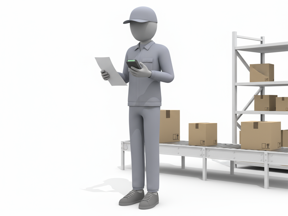 工場や物流倉庫の出荷ラインで、作業員がベルトコンベアの脇に立ち、手にした伝票とハンディターミナルの表示を照合しながら、流れてくる商品の検品作業を行っている様子を描いた無料イラストです。正確性が求められるピッキングリストとの照合作業や、出荷前の最終確認といった、品質管理に欠かせないワーキングシーンを表現しています。物流システムの解説、倉庫内業務の紹介、求人広告の仕事風景など、幅広くご活用いただけるフリー素材です。商用利用ももちろんOKです。