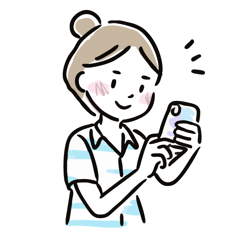 笑顔でスマホを操作する女性のフリーイラスト素材