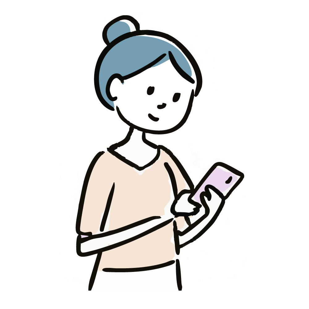 お団子ヘアの女性が、スマートフォンを手に持ち、楽しそうに操作している無料イラストです。穏やかな笑顔から、アプリの利用、SNSのチェック、または友人との楽しいチャットなど、ポジティブなシーンが連想されます。このフリー素材は、シンプルなデザインで汎用性が高く、様々なコンテンツの挿絵として使いやすいのが特徴です。商用利用OKですので、ウェブサイト、ブログ、広告バナーなどに幅広くお使いいただけます。