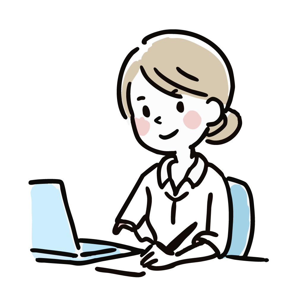 笑顔でノートパソコンを操作する女性の無料イラスト素材