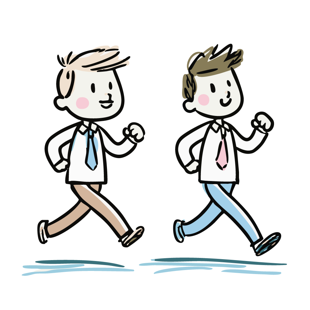 この「並んで歩く2人」の無料イラストは、コンテンツに「良好な人間関係」や「ポジティブな職場環境」といったイメージを簡単に追加できます。フリー素材なので、コストをかけずにウェブサイトやブログ記事に、親しみやすく明るい雰囲気を加えることができます。商用利用OKのため、企業の採用ブランディング(例:「風通しの良い社風」)、メンタルヘルスケアに関する資料、またはオフィスカジュアルの推進といったテーマのコンテンツにも幅広くご活用いただけます。