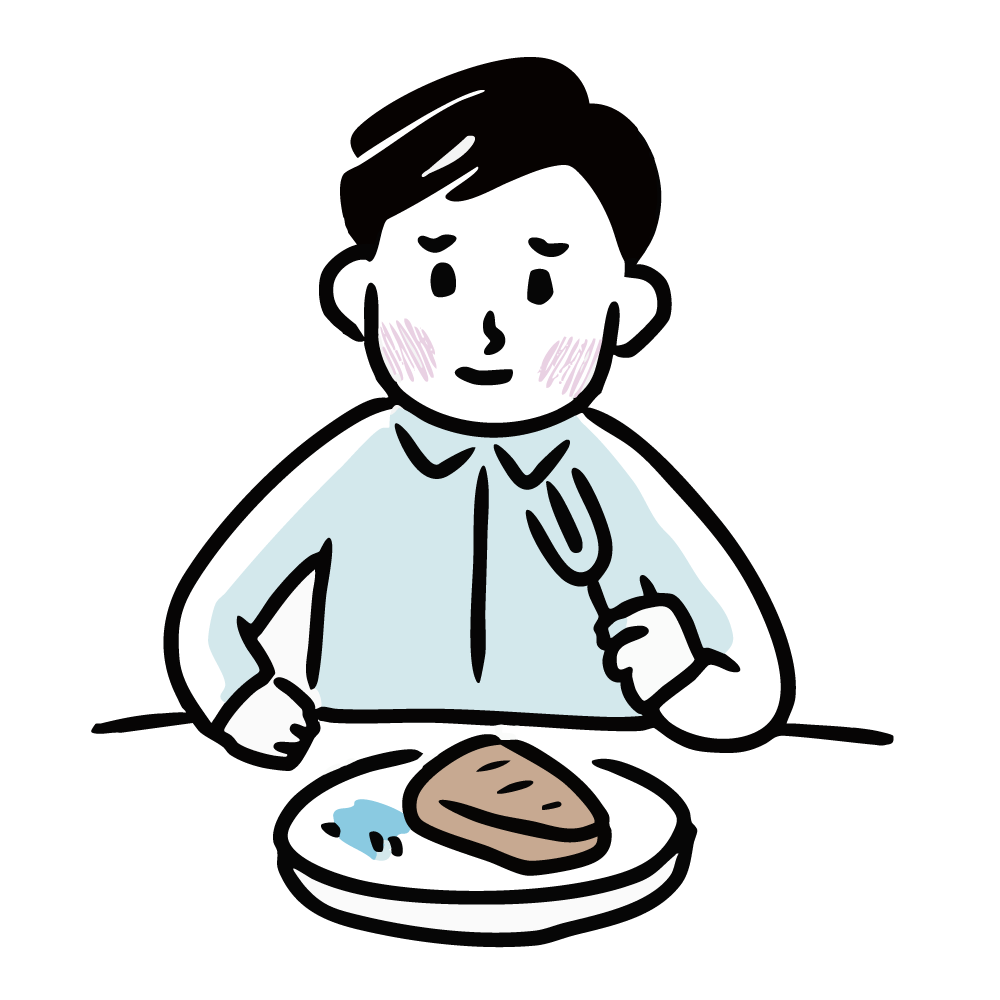 ステーキ(洋食)を食べる男性の無料イラスト素材