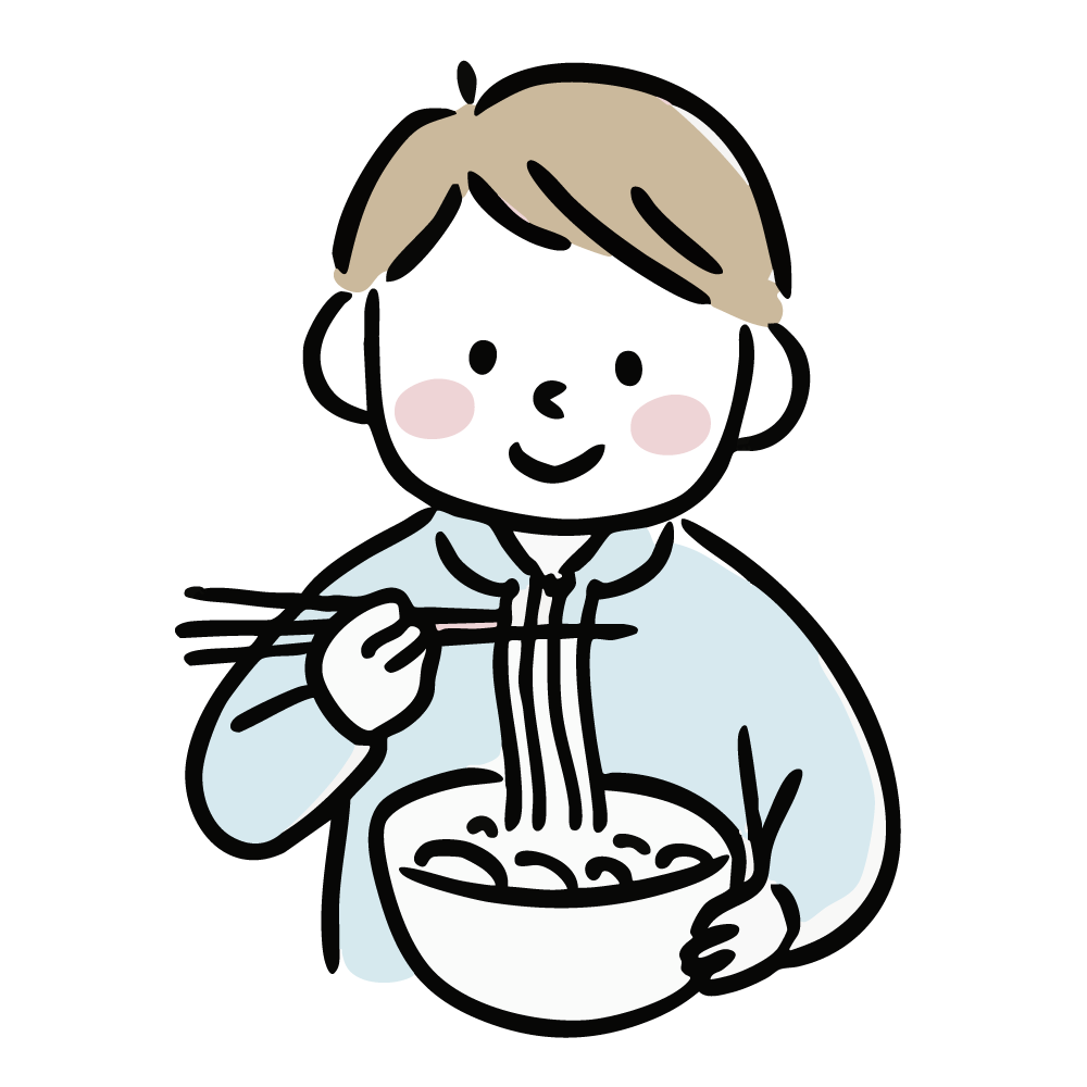麺類(うどん・ラーメン)を食べる男性(男の子)の無料イラスト素材