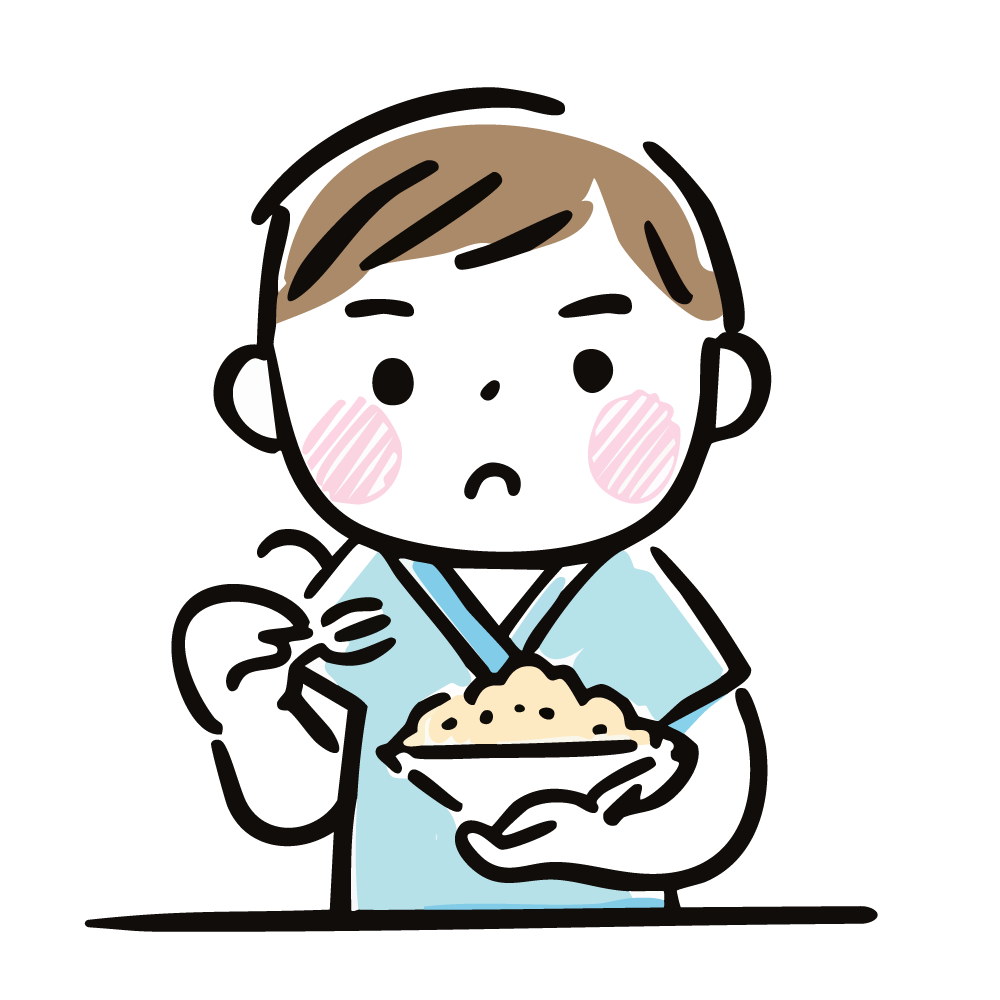 この人物イラストは、食事シーンでの「不満」や「戸惑い」といった複雑な感情を表現できる珍しい素材です。好き嫌いや食生活に関するコンテンツで、ユーザーの共感を呼ぶ挿絵として役立ちます。商用利用OKなフリー素材のため、コミカルなアクセントや問題提起のビジュアルとして安心してご利用いただけます。