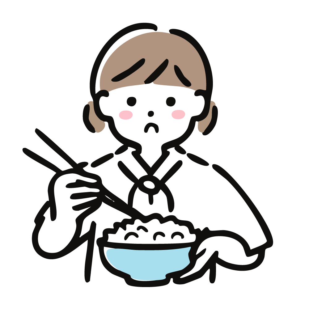 ご飯を悲しそうな顔で食べる女の子の無料イラスト素材