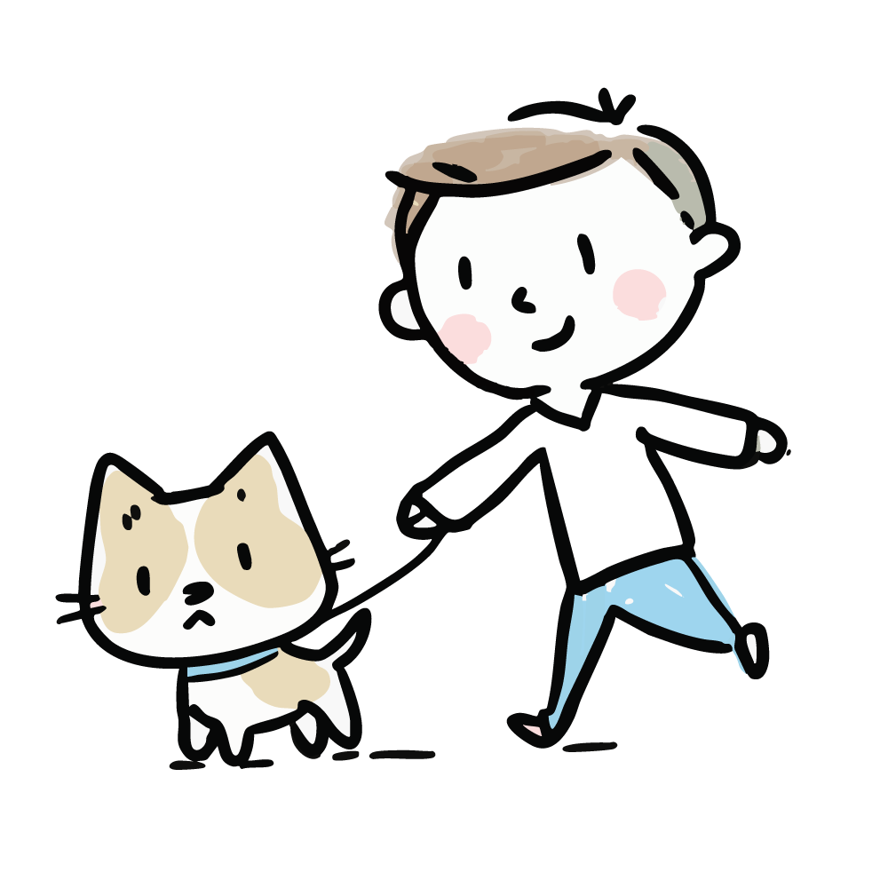 男の子が猫の散歩(お散歩)をする無料イラスト素材