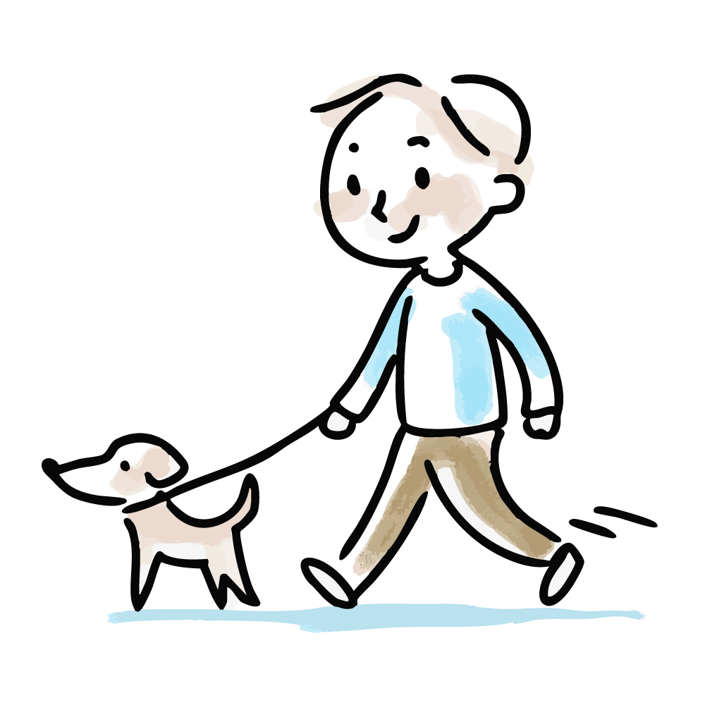 男性の犬の散歩(お散歩)を描いた手書き風無料イラスト