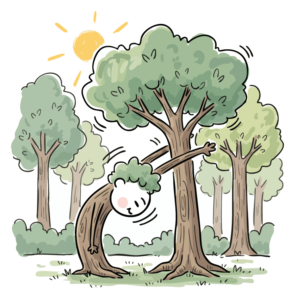 木の親子がハグする、心温まる森のフリーイラスト
