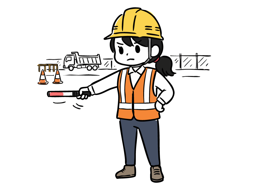 女性の交通誘導員(工事現場)のかわいいフリーイラスト【無料ダウンロード】