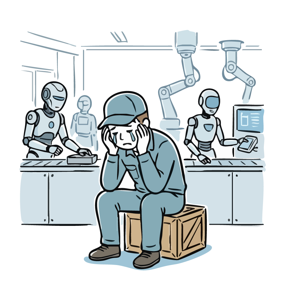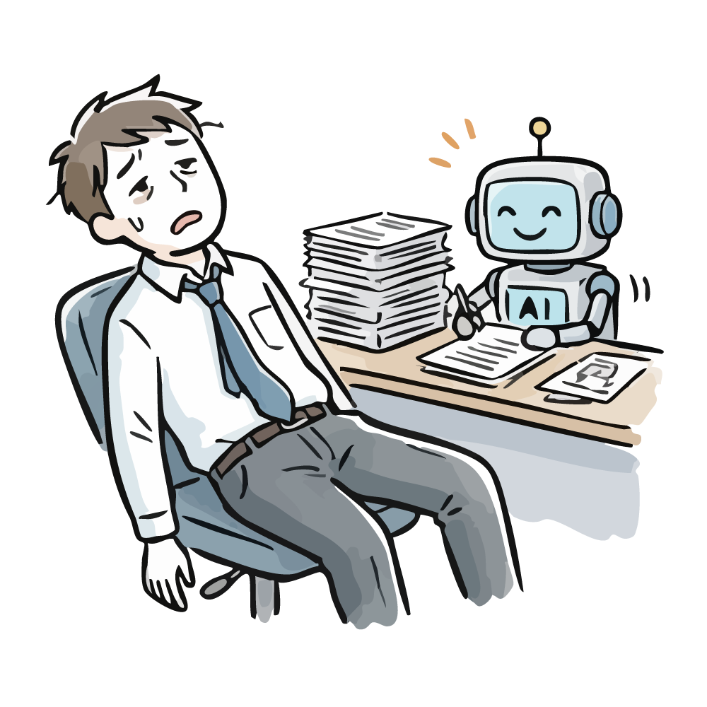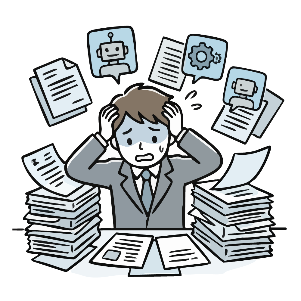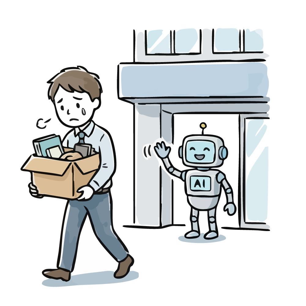 この素材は、シンギュラリティやAI導入による雇用不安、テクノロジーへの畏怖をテーマにした記事に最適です。かわいいけれど切実な表情の人物が、読者の共感を呼びます。おしゃれな手書き風なので、ビジネスブログやニュースサイトのアイキャッチとしても違和感なく馴染みます。プリントして社内研修の資料に使うのもおすすめです。無料のフリー素材として、コストをかけずに質の高いコンテンツ作りをサポートします。