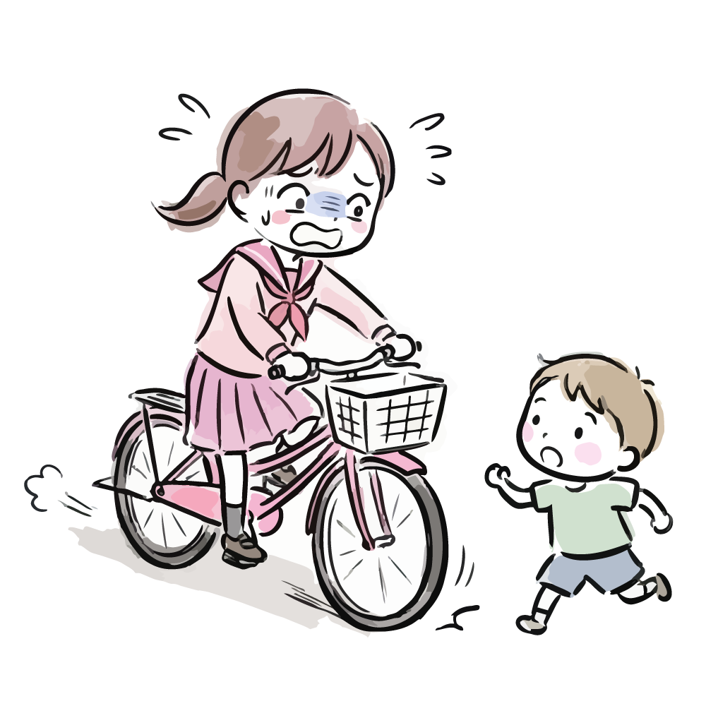 自転車の二人乗りを注意する警察官のイラスト