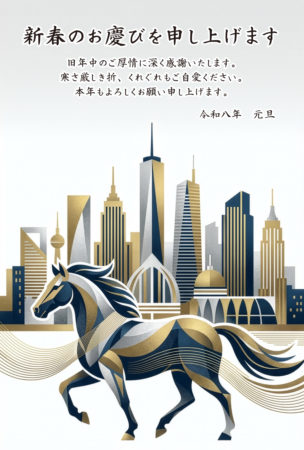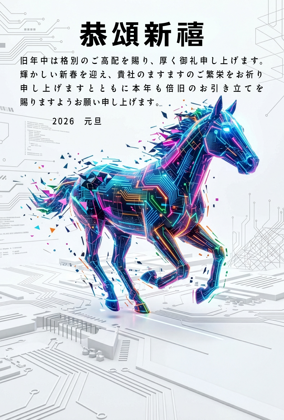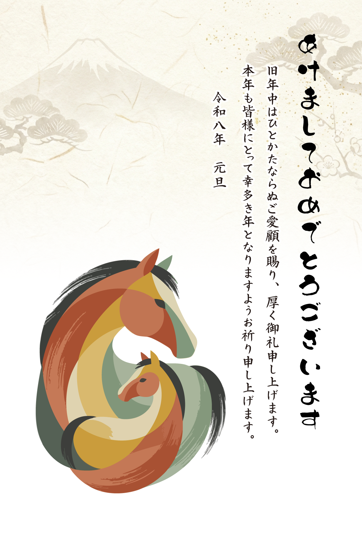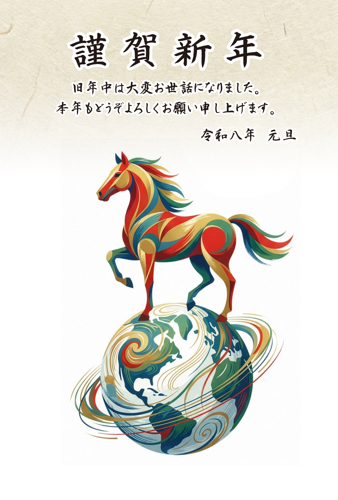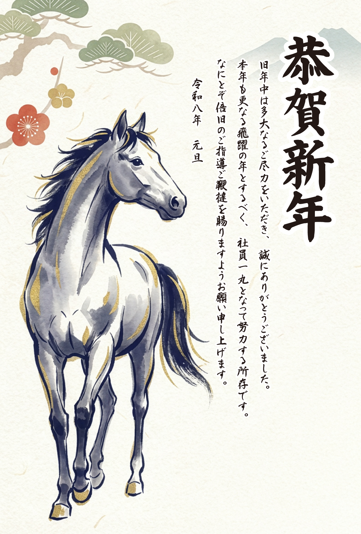 勢いのある馬のイラスト 年賀状2026 ビジネス向け無料テンプレート