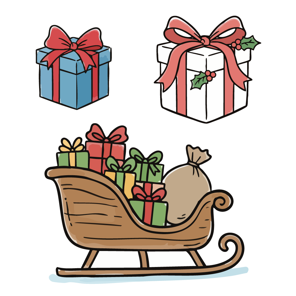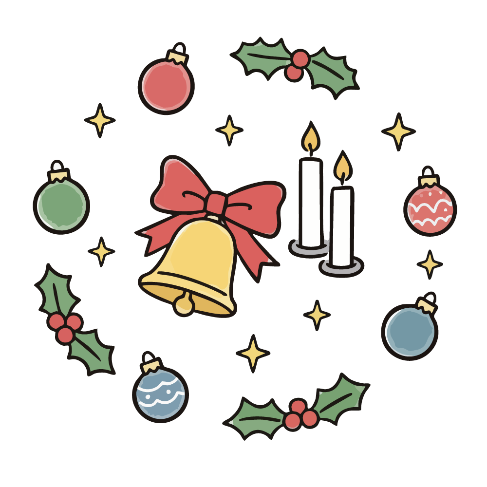 このさし絵があるだけで、画面が一気にクリスマスムードに包まれます。複雑すぎないデザインは、縮小してアイコンとして使っても視認性が高く、ステッカーやバッジの素材としても優秀です。商用OKのフリー素材なので、店舗のセールチラシやSNSの投稿画像など、ビジネスシーンでも安心して利用できるのが大きな魅力です。手作り感のある「ゆるい」テイストは、見る人に安心感を与え、クリック率の向上や親近感の醸成に役立ちます。