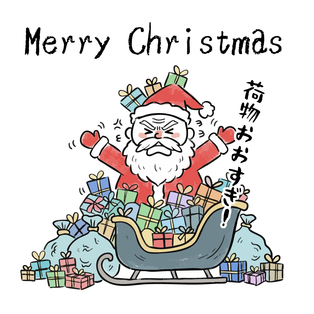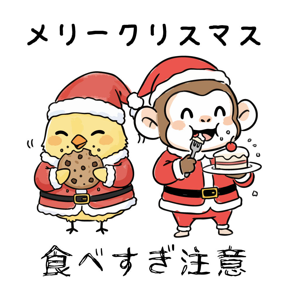 LINEスタンプの代わりに送信して、ユーモアのあるクリスマス・年末の挨拶文として活用できます。完璧すぎない「ゆるい」雰囲気が、親しい友人へのメッセージにぴったり。商用OKなので、あえて気の抜けたキャンペーンの告知や、年末年始の休業案内などのテンプレート素材としても目を引くデザインです。