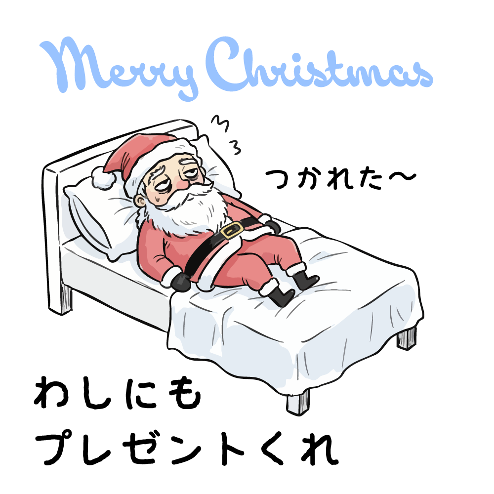 「Merry Christmas」の文字とは裏腹に、日本の冬の定番「こたつ」に入り込んでテレビを見ているサンタクロースの無料イラスト素材です。手書き風のゆるいタッチで描かれたサンタは、「明日から本気」というセリフとともに、年末から新年への忙しさを放棄したようなユニークなデザイン。登録不要で今すぐダウンロードでき、クリップアートとしてブログのさし絵や、SNSでの近況報告にも最適です。