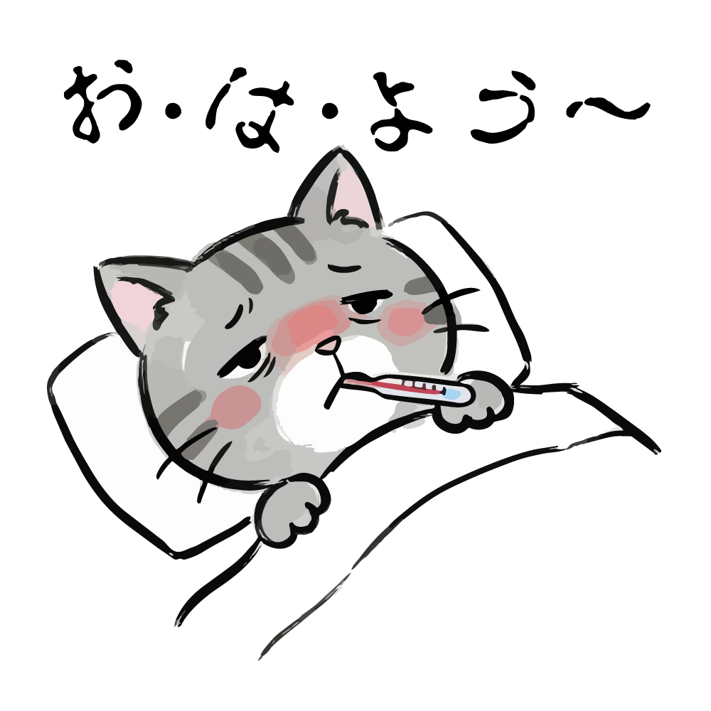 元気な茶トラ猫の「おはようございます」挨拶イラスト