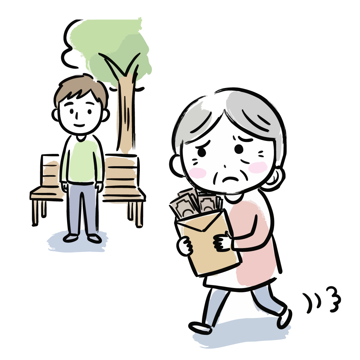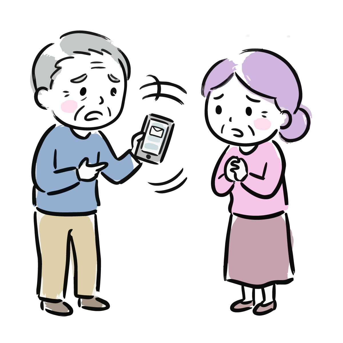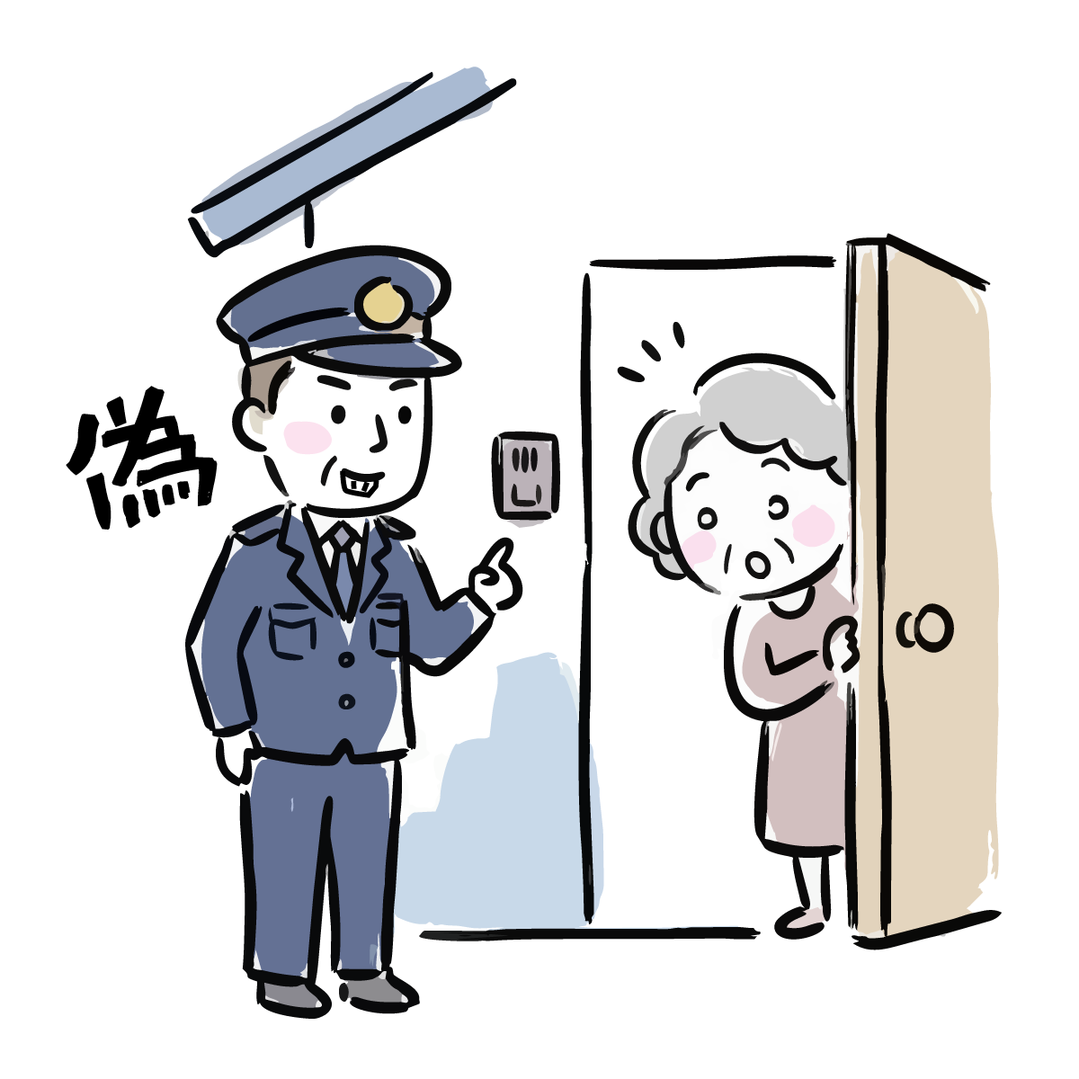 警察署や自治体が発行する防犯ポスター、町内会の回覧板、社内報でのコンプライアンス・防犯啓発の挿絵としておすすめです。また、高齢者のご家族に向けた注意喚起のブログの挿絵や、プレゼンテーションの資料用素材としても便利にお使いいただけます。手描き風の温かみのあるイラストは、見る人に安心感を与えつつ、詐欺被害への警戒心を高めるのに効果的です。プリンタで印刷してそのまま掲示物にも使いやすい画像です。