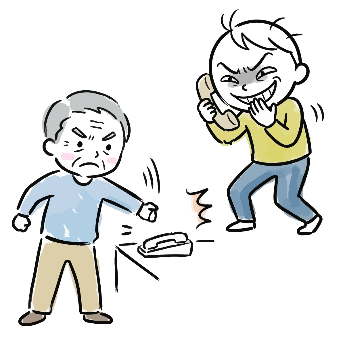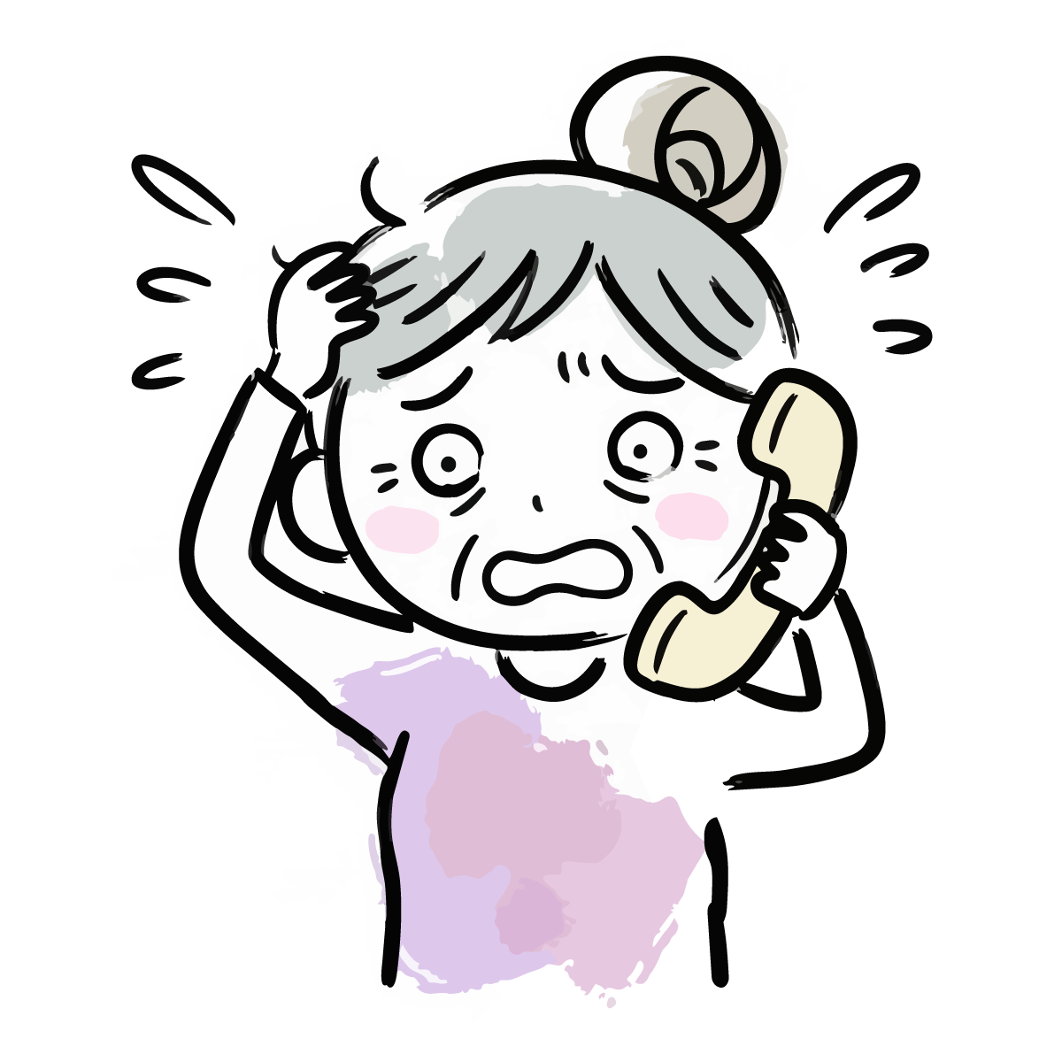 突然の不審な電話に青ざめ、驚いている人物を描いた手書き風の無料イラスト素材です。オレオレ詐欺や特殊詐欺、悪質な勧誘電話を受けた瞬間の驚きや戸惑いをわかりやすく表現しています。防犯や注意喚起をテーマにしたサイト制作やブログ作成、チラシなどのデザイン制作に最適です。シンプルで親しみやすいタッチなので、深刻になりすぎず、しっかりと危険性を伝えることができます。登録不要でダウンロードでき、商用OKのフリー素材として幅広くご活用いただけます。