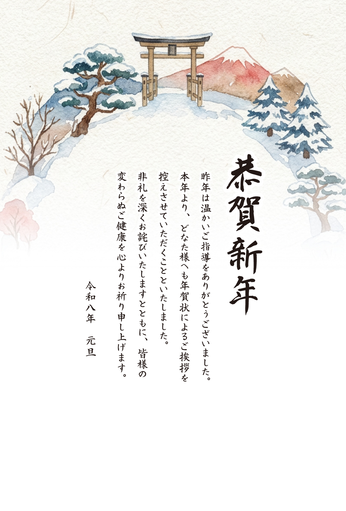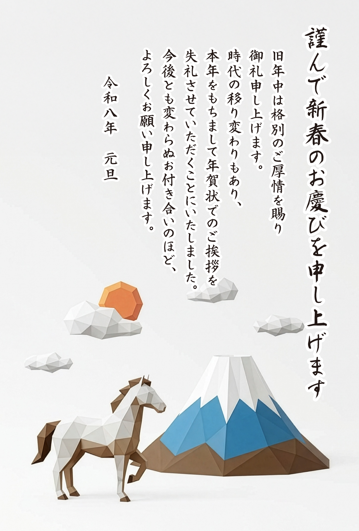 このフリー素材は、堅苦しくなりすぎずに年賀状じまいを伝えたい方に最適です。文章付きなので、そのままプリントするだけで完成する手軽さが魅力。かわいいデザインは受け取った相手に柔らかい印象を与え、角を立てずに今後のお付き合いをお願いできます。おしゃれなステッカー感覚でワンポイントとしても映えるデザイン性があり、ビジネスからプライベートまで幅広く利用可能。無料で高品質なテンプレートをお探しの方におすすめです。