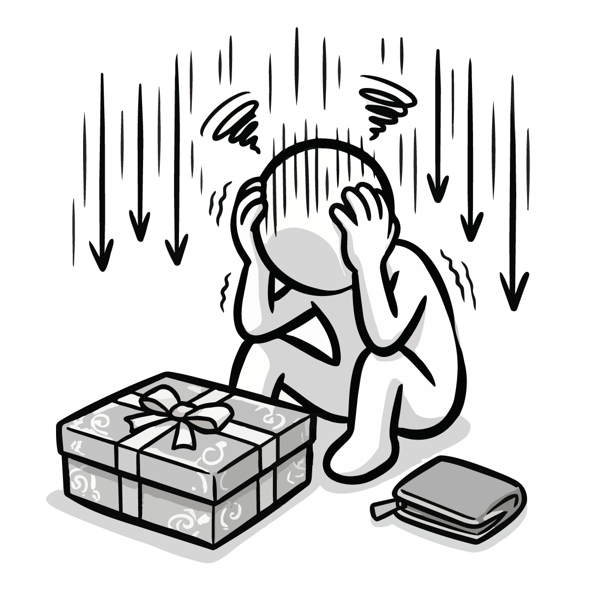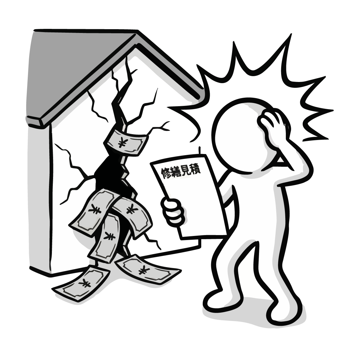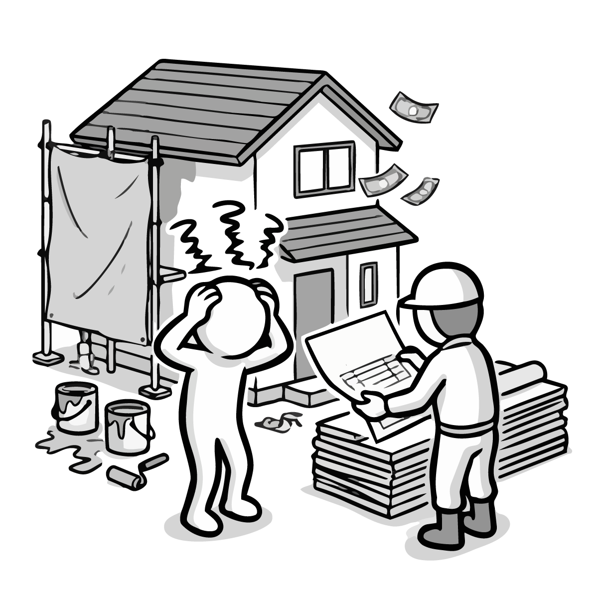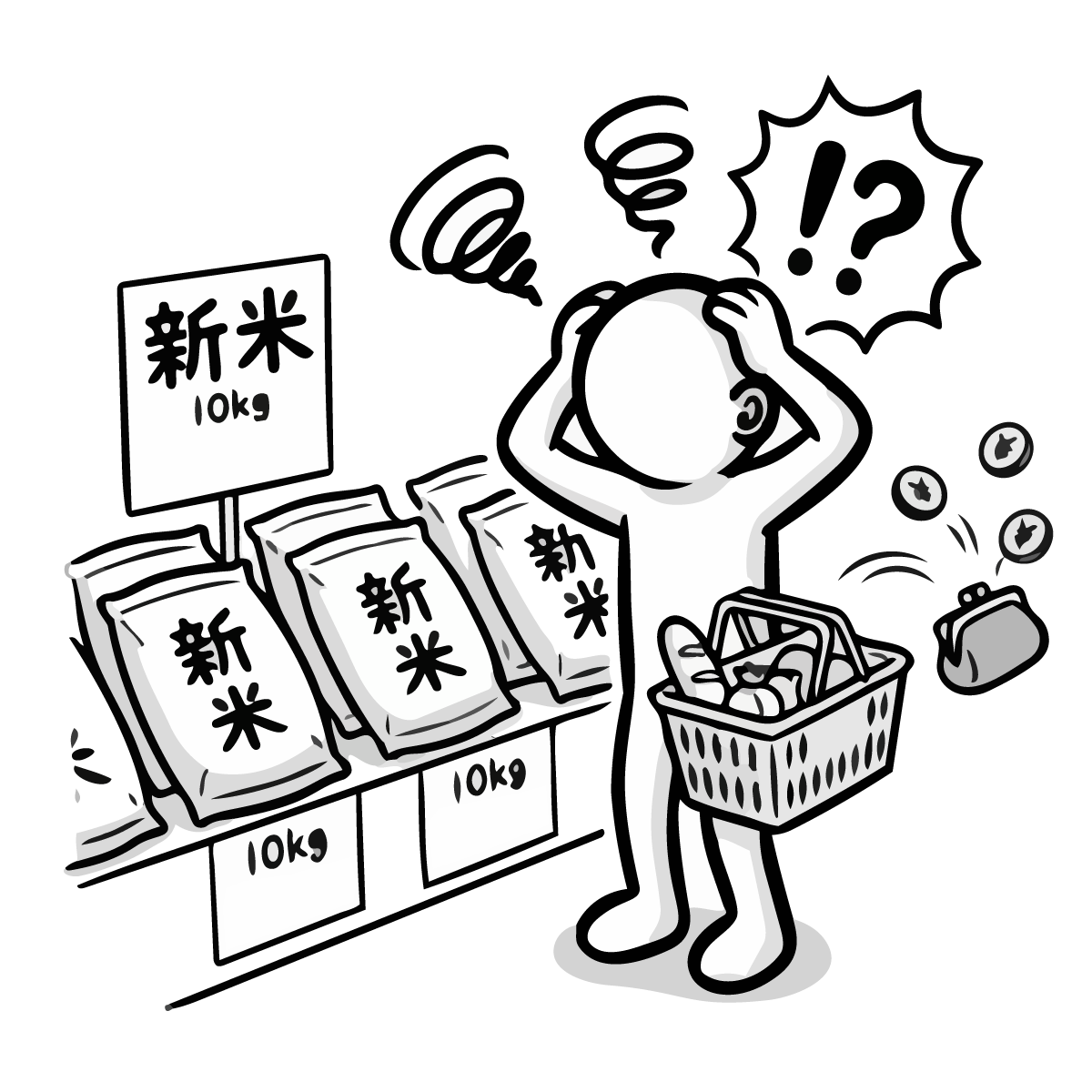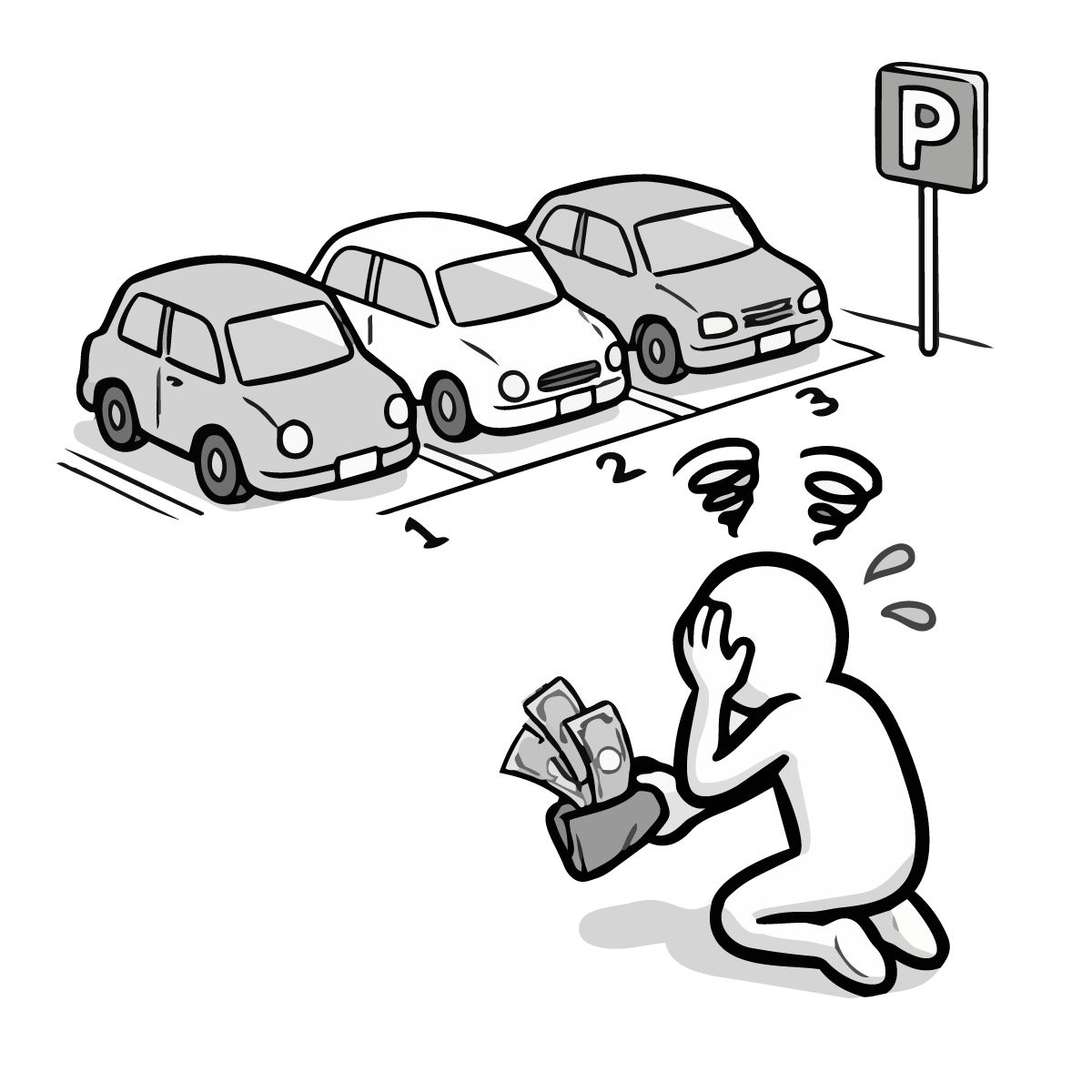 毎月の固定費である家賃の支払いに頭を悩ませるシーンを描いた手描き風の無料イラストです。大家さんに家賃を手渡す際、お財布が寂しくなり焦っている様子をシンプルでかわいいピクトグラム風のキャラクターで表現しました。生活費のやりくりや、固定費の負担といった家計の悩みをテーマにした記事にぴったりなフリー素材です。登録不要で簡単にダウンロードでき、商用OKなので、ビジネスサイトや個人のブログ作成など幅広い用途でご利用いただけます。