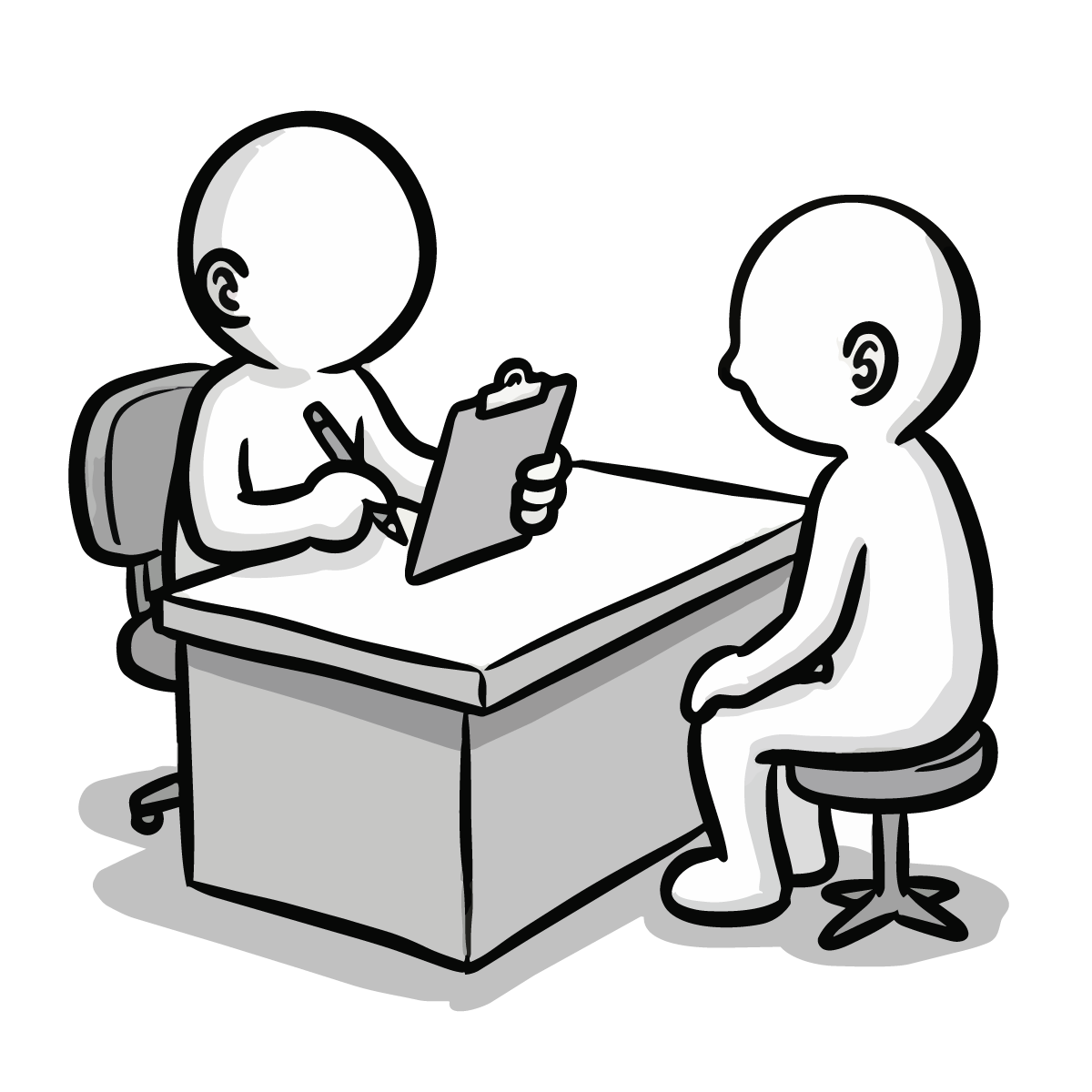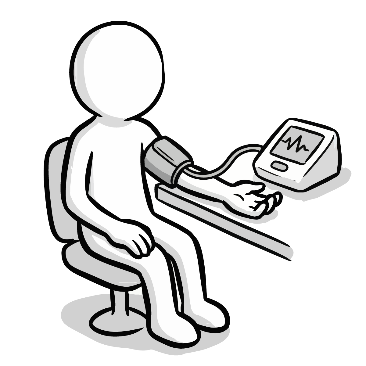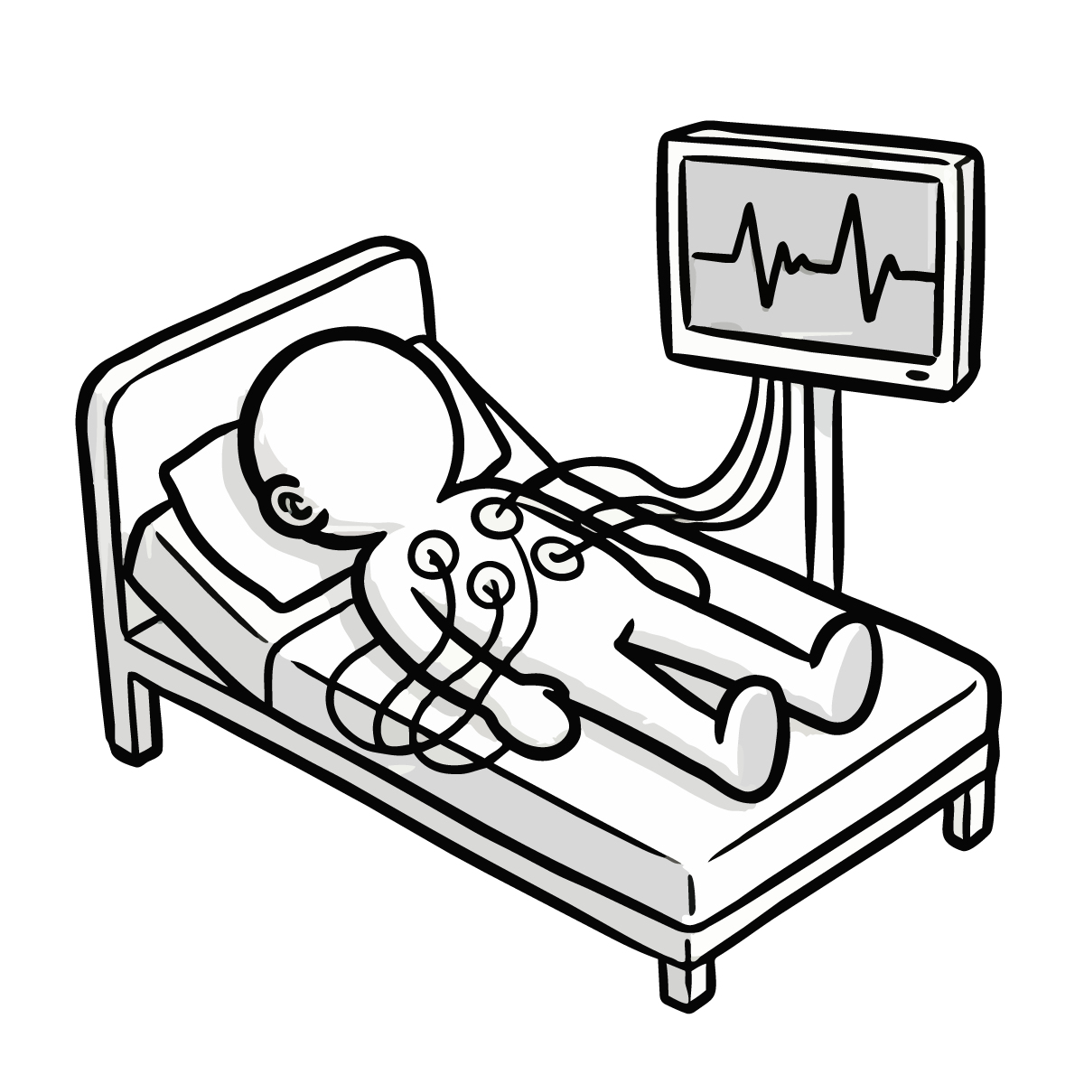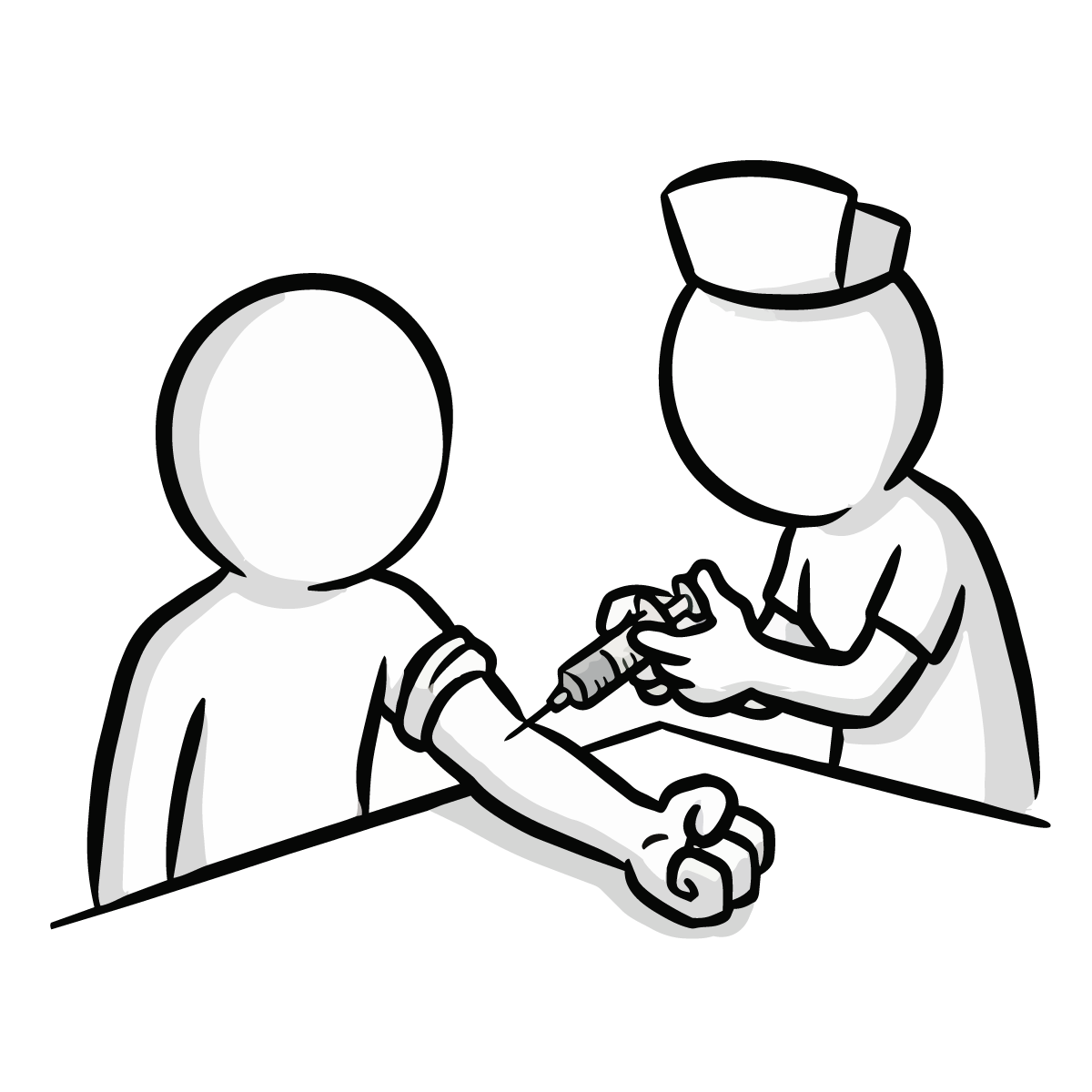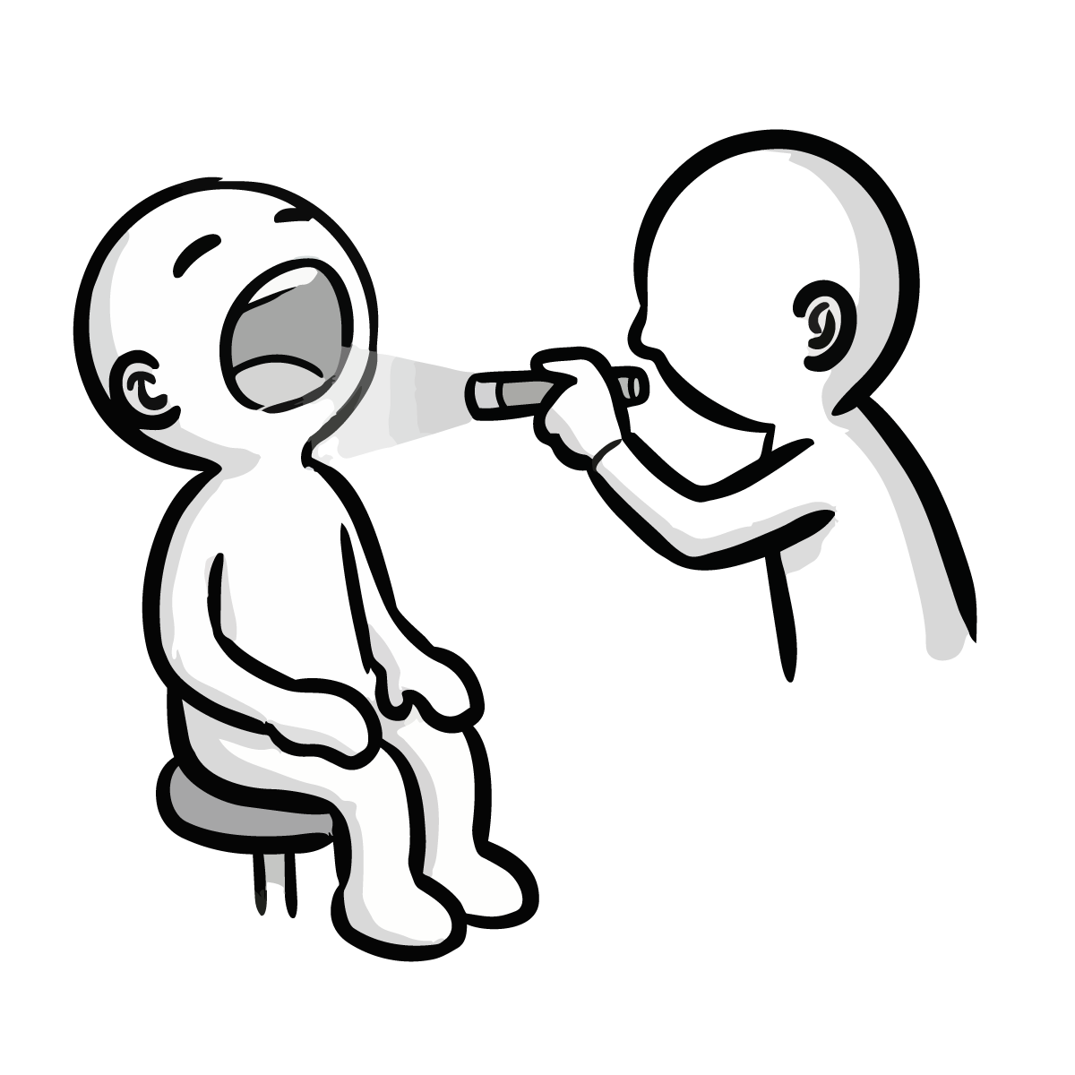 医師が患者の胸に聴診器を当てて診察をしているシーンを描いた、シンプルで手描き風の無料イラストです。健康診断や病院での問診風景を表現するのに最適なピクトグラム調のデザインとなっています。白黒のモノトーンカラーで構成されているため、どんな媒体にも馴染みやすく、スタイリッシュな印象を与えます。商用OK、登録不要でダウンロードでき、サイト制作やブログの挿絵としてすぐにご利用いただける便利なフリー素材です。医療関係のコラム記事などにも幅広くご活用いただけます。