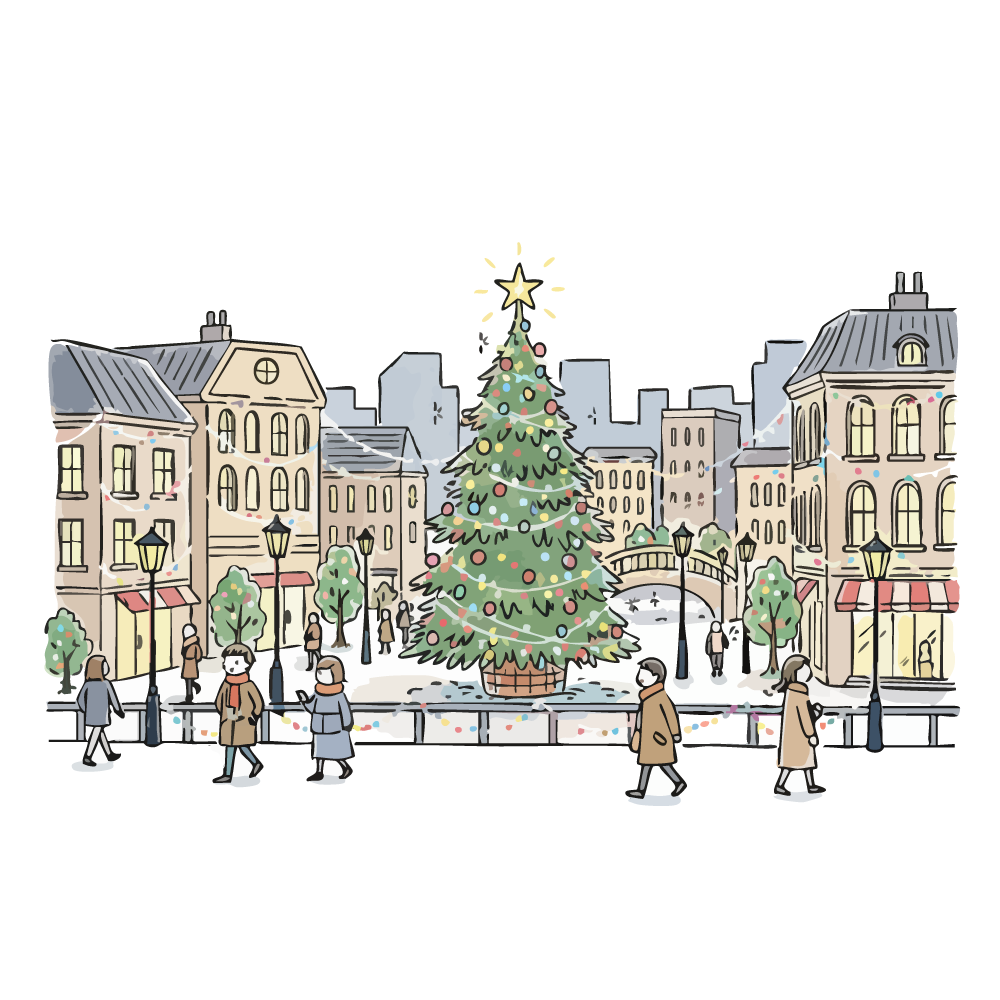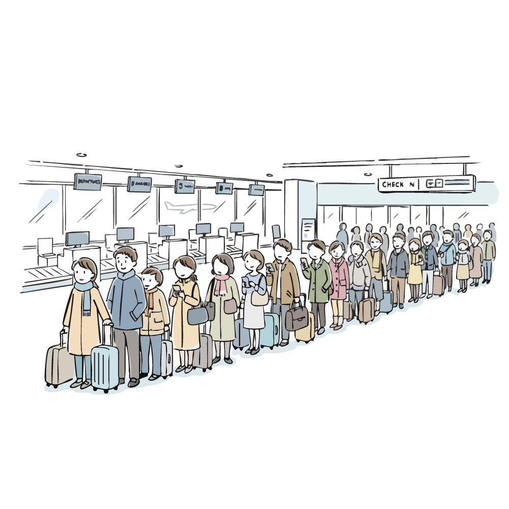 混雑しがちな年末の移動風景を、ほっこりとした温かみのあるタッチで表現しているため、見る人に安心感を与えます。旅行代理店のチラシや、年末年始のスケジュール案内などのプリント媒体にも最適です。おしゃれで癖のないクリップアートなので、他の写真やテキストとも馴染みやすく、誰でも簡単にプロのようなデザインが作れます。