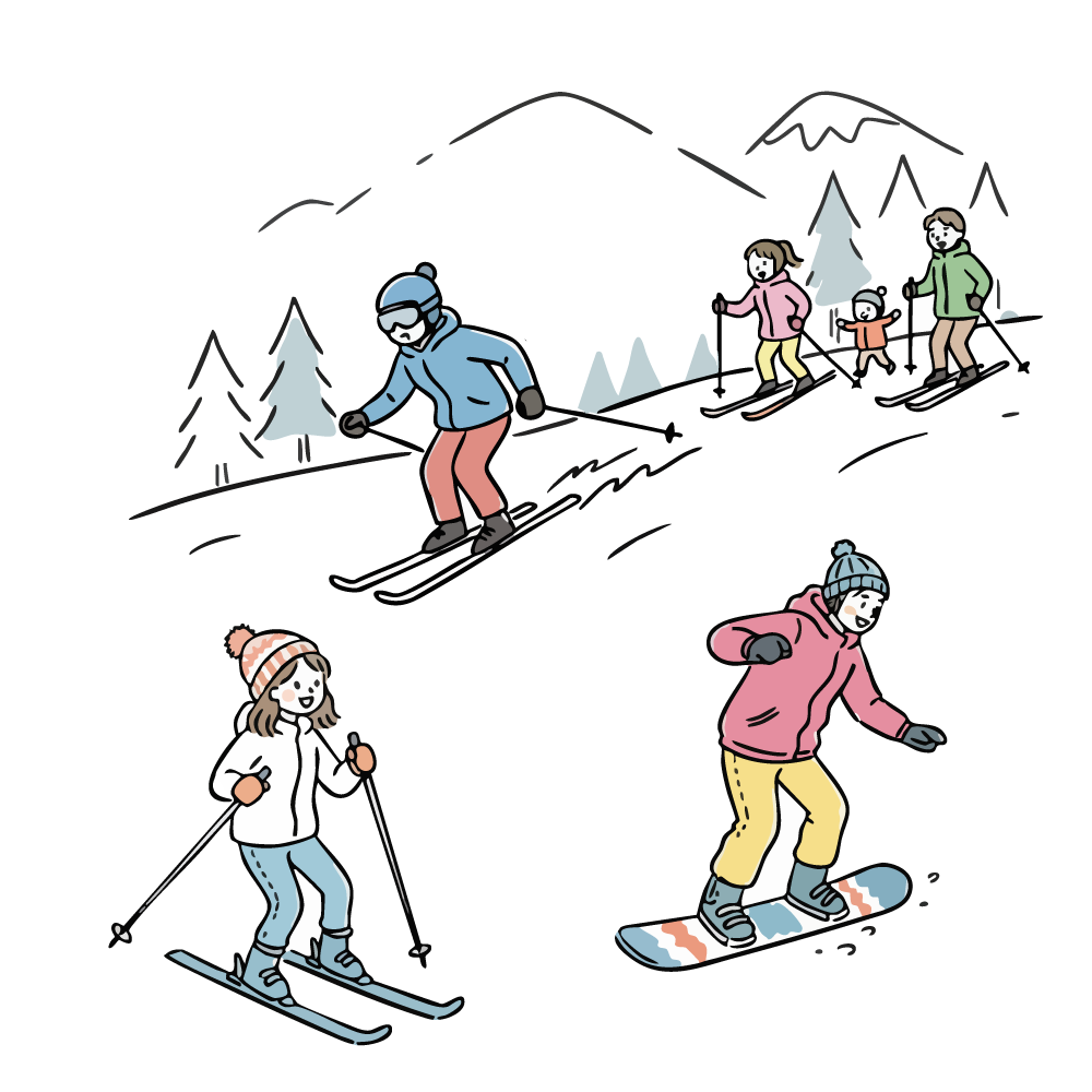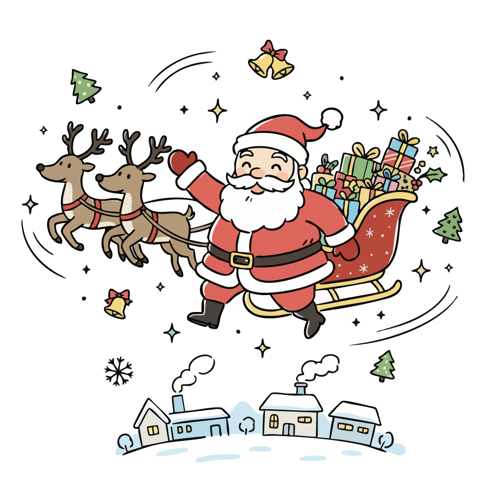 年末の帰省シーズン、新幹線や電車で実家へ向かう家族を描いたかわいい手書き風イラストです。大きな荷物を持ち、子供連れで移動する年末ならではの場面を切り取りました。この素材は登録不要ですぐにダウンロードでき、商用OKなので、ブログや交通情報の記事、旅のしおりのさし絵として幅広くご利用いただけます。無料で使えるフリー素材として、親しみやすい雰囲気のデザイン制作に役立ちます。